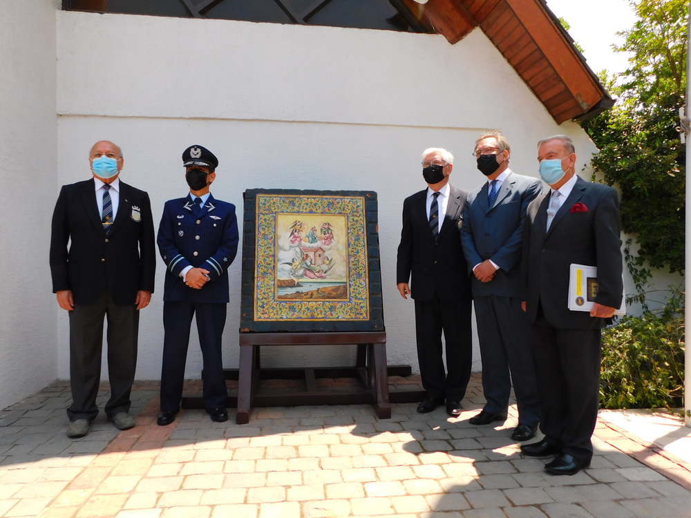 En el frontis de la capilla institucional, el presidente del Instituto de Investigaciones Histórico Aeronáuticas de Chile, Norberto Traub Gainsborg, hizo uso de la palabra para explicar el proceso de rescate de la pieza patrimonial desde antiguas dependencias de la Fuerza Aérea en el ex aeropuerto de Cerrillos, las que hoy día pertenecen a la Policía de Investigaciones. “Esta imagen que ha sido testigo de más de 70 años de nuestra aviación civil y militar, que podría haber ya desaparecido, oculta detrás de una cajas y algo de pintura se mostró para seguir acompañándonos. Había que rescatarla y traerla a un sitio seguro”.
